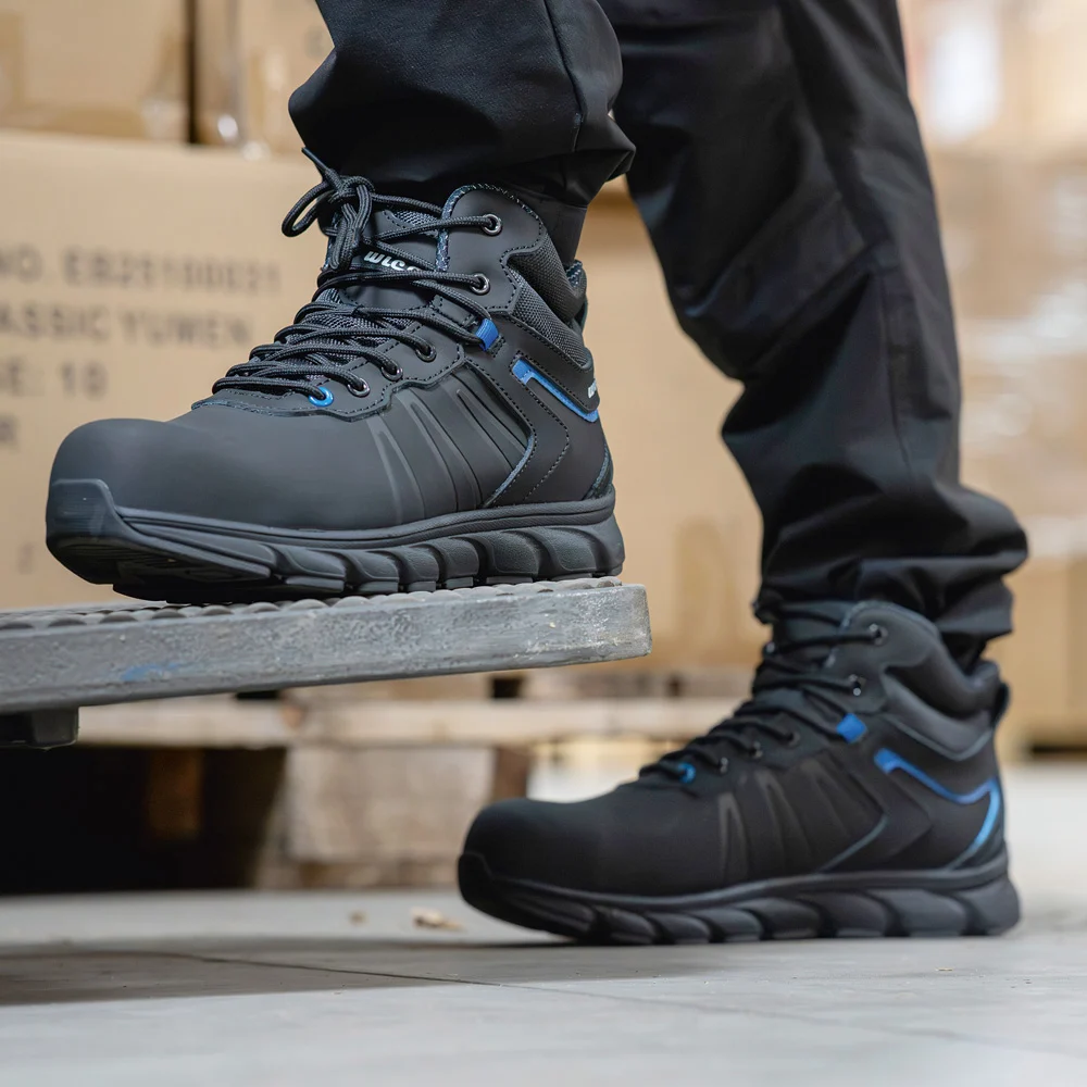 • Fiberglaskappe und durchtrittsichere Gewebezwischensohle